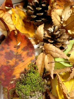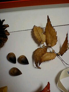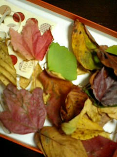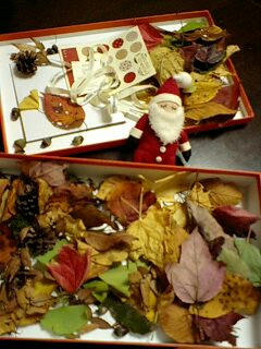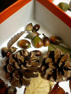 昨日今日と散歩で拾った落ち葉やらどんぐりやら