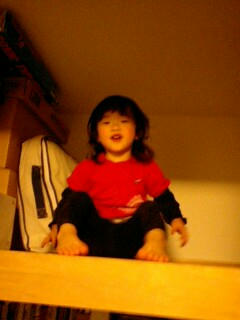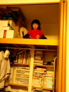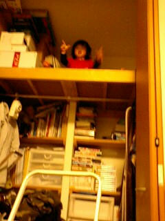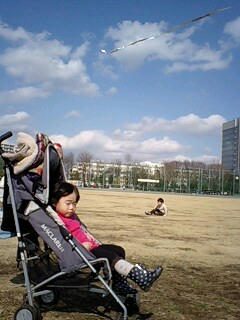 風見用吹き流しの影をジャンプして遊ぶソタ
