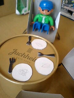 皿とフォークもつけたらソタが皿にご飯を書いてくれました